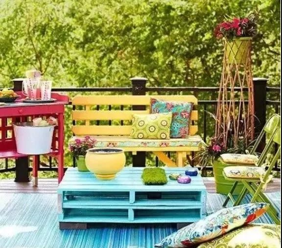 ▲ 條板箱拼接而成的茶幾,最巧妙的就是在中間的空洞里填上了鵝軟石