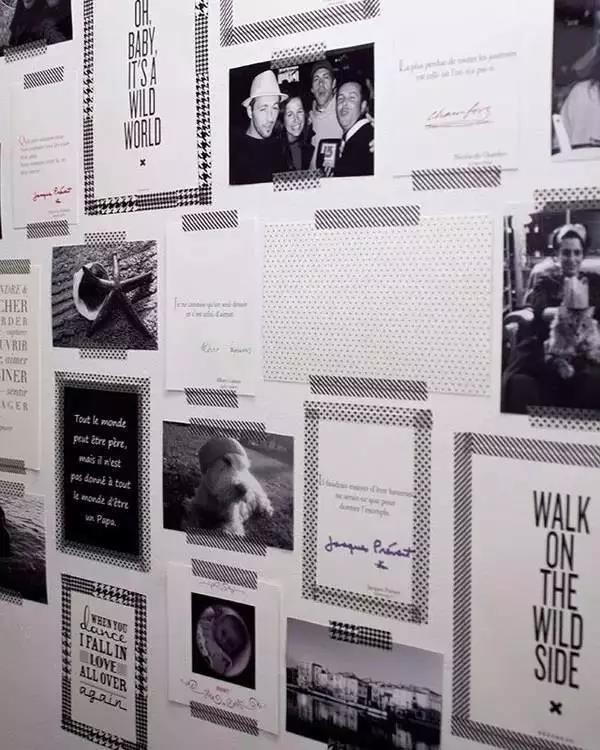 ▲ 喜歡的一些小畫,用相框則需要再墻上釘釘子,比較麻煩,有時(shí)候墻面也不能釘釘子,用透明膠貼則會(huì)影響美感。那就不如用紙膠帶做一個(gè)畫框吧
