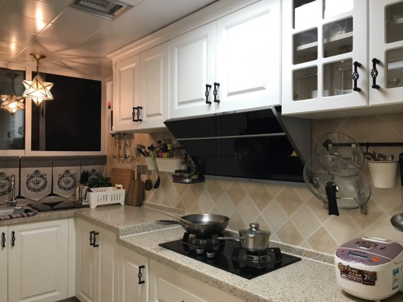 封閉式廚房,選用高品質(zhì)的抽油煙機(jī)以及模壓板櫥柜解決廚房油煙問(wèn)題。