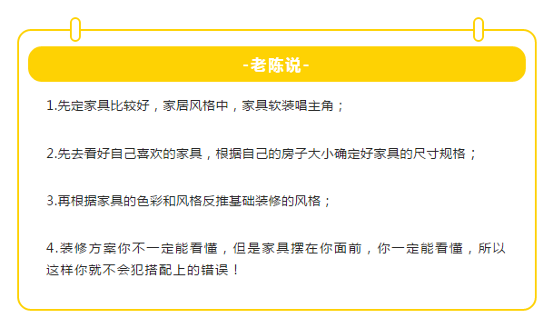 想必大家看完老陳的視頻后,對先定裝修還是先定家具的問題有了清晰的認(rèn)識,先定裝修有弊端,而先定家具優(yōu)勢多多。如果你還在糾結(jié),請往下看!
