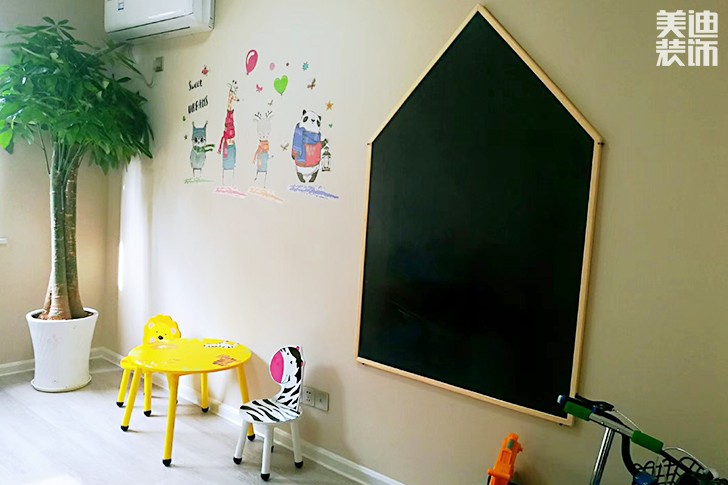 現(xiàn)在毛葉夫婦都處于創(chuàng)業(yè)階段,平時工作很忙,書房里的小黑板是李玲琳設計師特意設計的,她想利用書房的黑板墻增加孩子和父母之間的互動,讓毛葉夫婦多一些時間陪伴孩子一起成長。