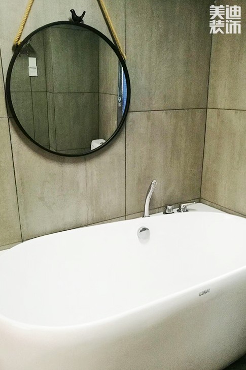 衛(wèi)生間采用圓形的鏡子,給人舒適的視覺體驗;搭配著規(guī)則圖案的瓷磚拼貼,增添藝術設計感,提升家裝的整體品質,打造出的專屬家裝風格。
