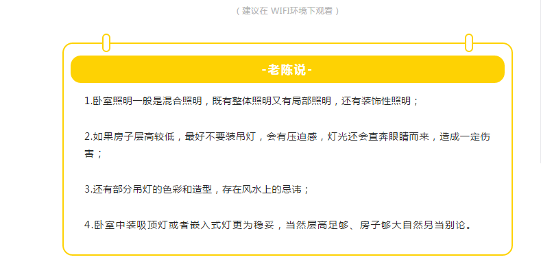 想必大家看完老陳的視頻后,對臥室燈光設(shè)計(jì)已經(jīng)有了初步了解,想知道到底該如何選擇臥室燈光,就接著往下看吧!
