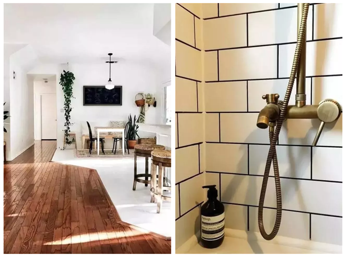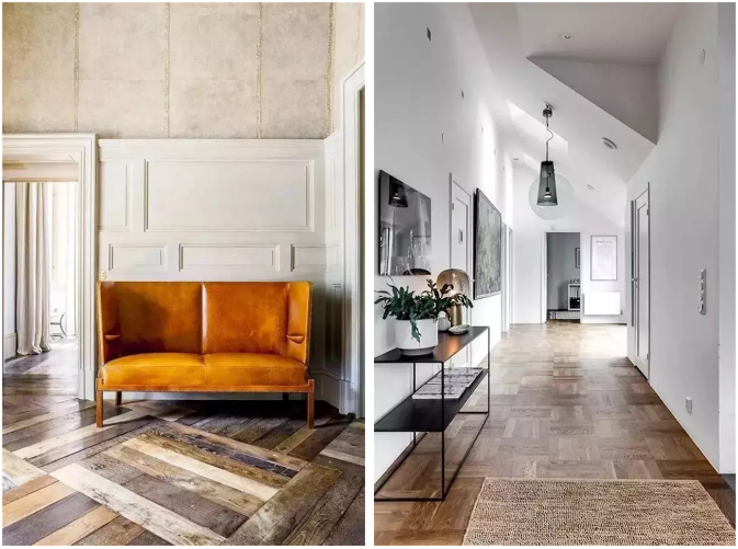 將各種不同規(guī)格、顏色的木地板拼接或者瓷磚與木地板混合拼接,這類拼接施工更復(fù)雜難度更高哦,但是藝術(shù)效果讓空間提升的格調(diào)不止一點(diǎn)點(diǎn)!