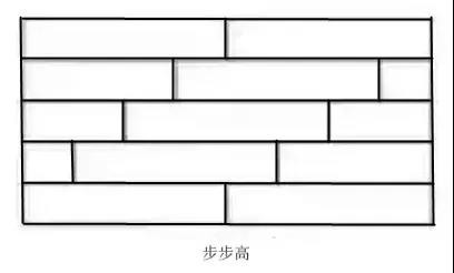 它與工字鋪?zhàn)畲蟮膮^(qū)別就在于,工字型的對(duì)稱更為嚴(yán)謹(jǐn),而步步高的起點(diǎn)則比較隨意。但兩者都具有視覺效果簡(jiǎn)潔明了、工藝簡(jiǎn)單、材料損耗少的優(yōu)點(diǎn)。