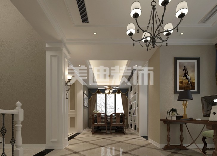 如果說美式是有風(fēng)度的,那么用紳士風(fēng)度來形容這套作品是再合適不過了。沉穩(wěn)的家具,精美的壁畫,精致的擺件,目光所及,盡恰到好處。設(shè)計(jì)師大膽運(yùn)用藍(lán)色,棕色,奶茶色,整個(gè)空間以一絲不茍、正值剛強(qiáng)的外顯性格,把持著柔美的美學(xué)情操。裝飾壁畫不再一味地凸顯紳士情懷,取而代之的是一副色彩活潑的多色畫,讓人眼前一亮,同時(shí)增加了臥室溫馨舒適感。