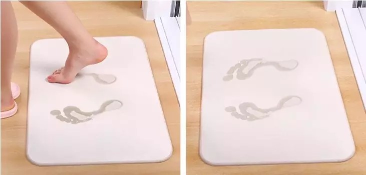 一般洗完澡出來用的都是普通的墊子,但是硅藻墊速干的速度是你無法想象的快,天然硅藻土的多孔結(jié)構(gòu),孔隙率高達(dá)90%以上,吸水量可以達(dá)到自身體積的2-4倍。即使水痕還在,但踩上去是干燥的天然泥土觸感。(本文圖片來源網(wǎng)絡(luò))