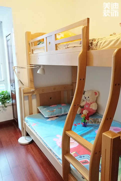 ▲兒童房擺上一張雙層兒童床,兩個(gè)小孩在此能進(jìn)一步培養(yǎng)感情。床邊再配上一個(gè)床頭燈,業(yè)主夫婦給孩子們讀睡前故事都方便了不少。