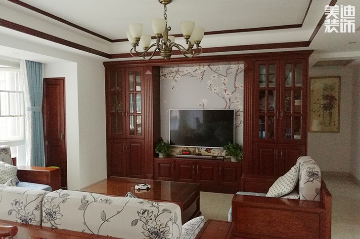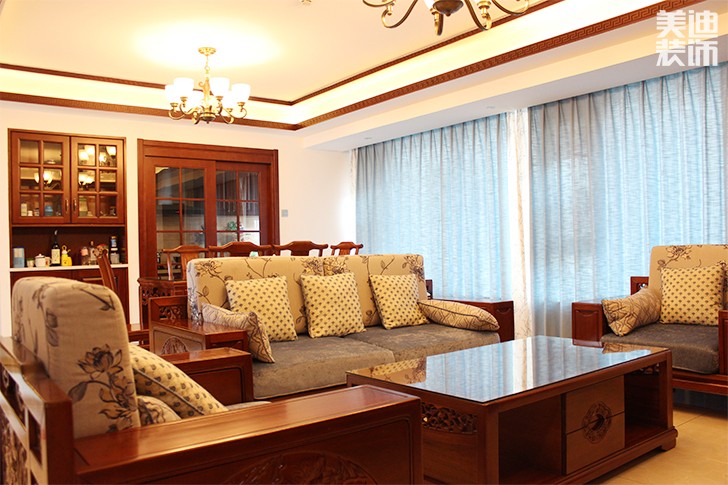 設(shè)計(jì)理念:房屋整體以深色的實(shí)木家具為主,有深厚沉穩(wěn)的底蘊(yùn)之氣。裝飾造型主要采用硬朗簡潔的直線條,空間具有層次感。既使得中式家具古典、質(zhì)樸的內(nèi)涵顯現(xiàn),又符合現(xiàn)代人追求的時(shí)尚感和實(shí)用性。另外在房屋設(shè)計(jì)和平面布局時(shí),設(shè)計(jì)師也充分考慮到主人的個(gè)人喜好和實(shí)際居住要求,不僅滿足了業(yè)主居住的要求,而且迎合了中式家具的設(shè)計(jì)風(fēng)格。