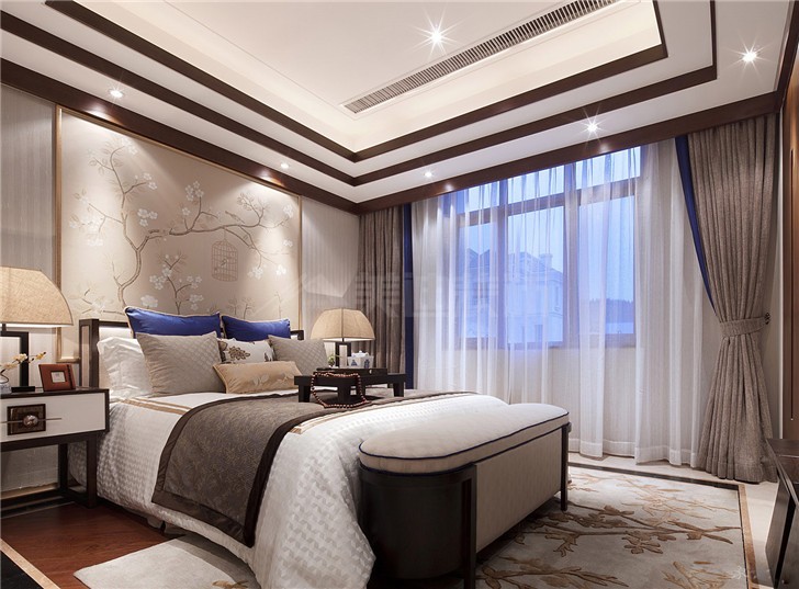 設(shè)計特點:打破了中式沉悶,用中式元素與現(xiàn)代裝飾和諧搭配,營造出一種經(jīng)典、寧靜卻不失趣味的意境。以深色為主,講究空間的層次感和跳躍感,多用隔窗、屏風(fēng)來強調(diào)室內(nèi)空間寬敞、內(nèi)外通透,再配以簡約的造型。