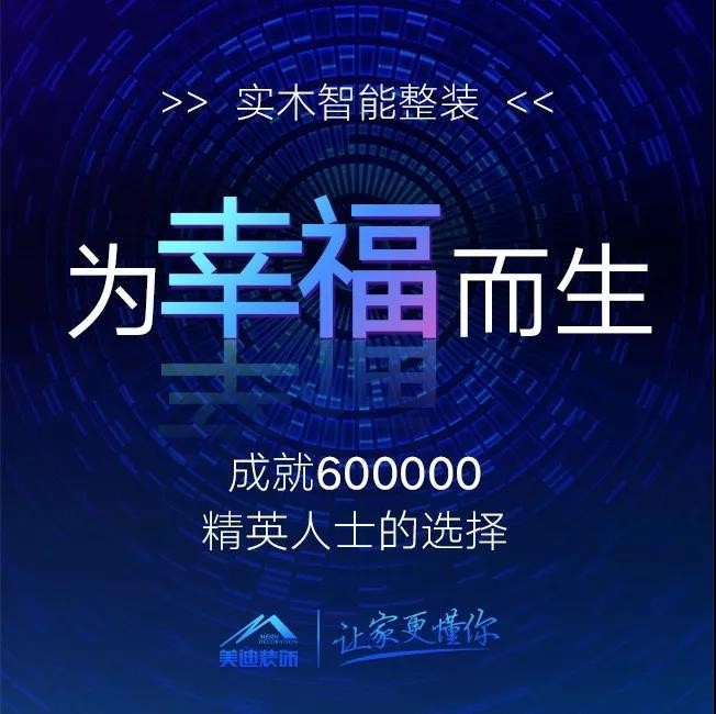 美迪18年,為600000精英家庭打造幸福家。一流的設(shè)計實力,過硬的施工質(zhì)量和優(yōu)質(zhì)貼心的服務(wù),美迪實木智能整裝,為您開啟美好生活。