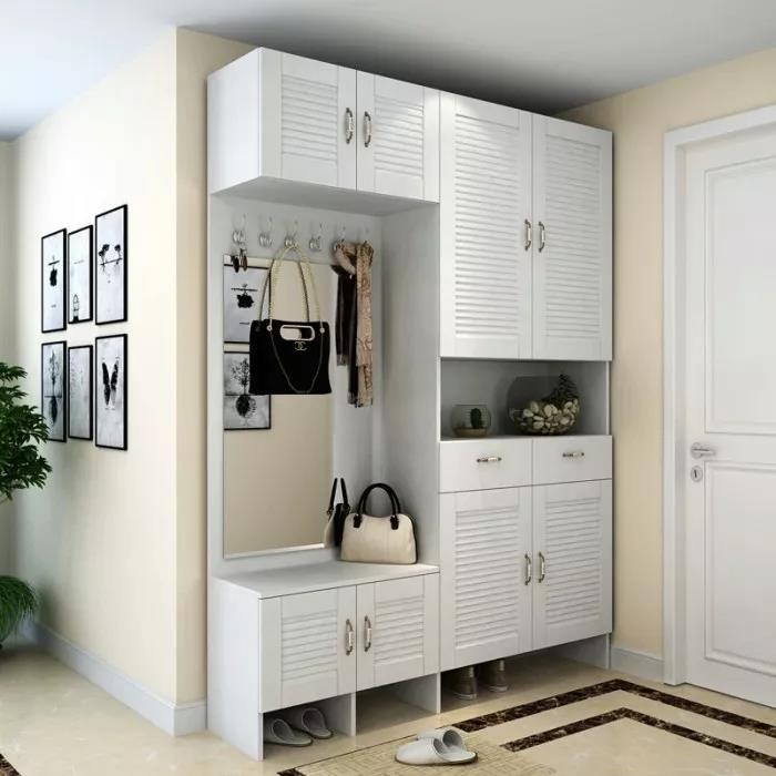玄關是進出房屋必經(jīng)的地方,為了方便,這里通常設置一些儲物用的家具,如鞋柜、壁柜、風雨柜、更衣柜等。