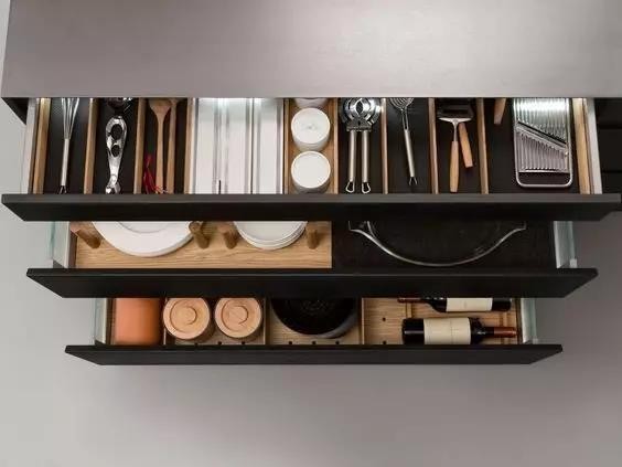 相比傳統(tǒng)的隔板式柜體,抽屜式空間的拿取時(shí)一目了然,更加便利。