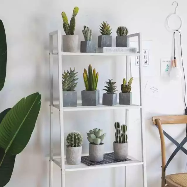 在家居中,一盆盆萌萌的多肉盆栽也是十分受歡迎的,包括仙人掌一類,既有觀賞性,生命力又非常頑強的。小型的盆栽和花架的搭配是簡單又聰明的做法。
