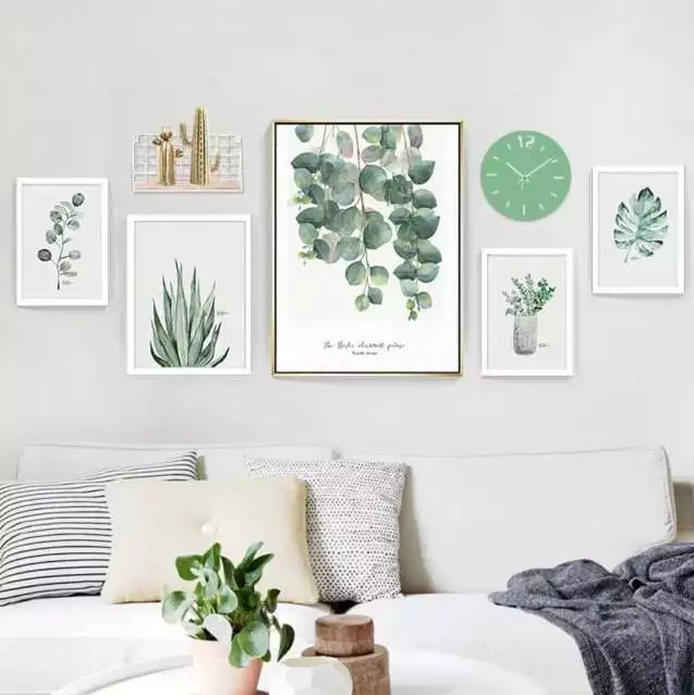 在家里掛上幾幅綠植裝飾元素的掛畫,和家里的盆栽相呼應(yīng),整個房間都充滿著綠意。在裝飾畫的附近,最好放上一盆盆栽,墻上的掛畫好像也有了生命一樣。