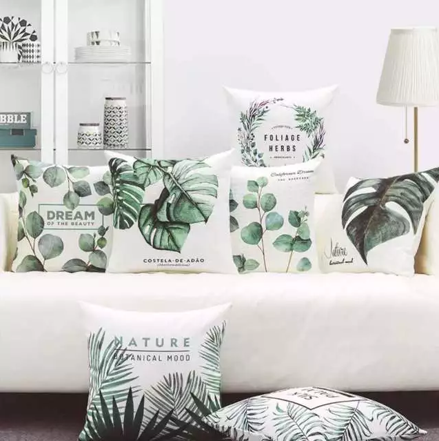 既然是綠植元素,那除了具有生命的植被們,還有一些具有綠植元素的物件們,比如掛畫,抱枕等等,也能給我們的家居帶來亮點。
