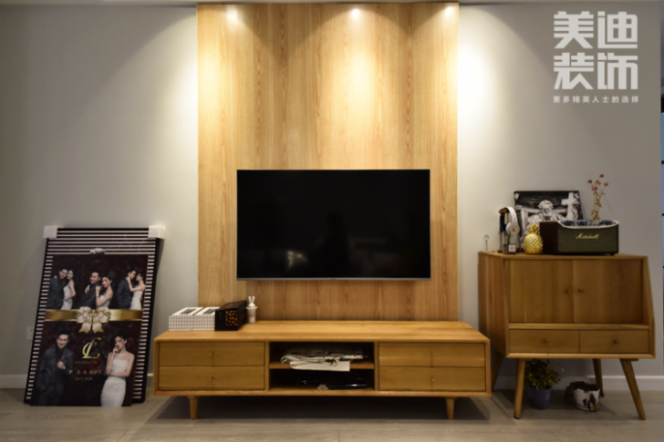 電視背景墻沒(méi)有過(guò)多的裝飾,通過(guò)燈光和簡(jiǎn)單的電視柜展現(xiàn)出層次感,豐富家的內(nèi)容。