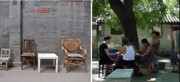 不知道你是否了解,在北京的胡同中,不同的家居擺放在外面,誰都可以使用。白天,坐在一起娛樂休閑,喝茶聊天,沒有固定的小家概念,人與人之間的距離是如此的親近。