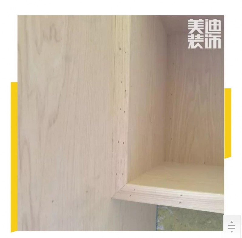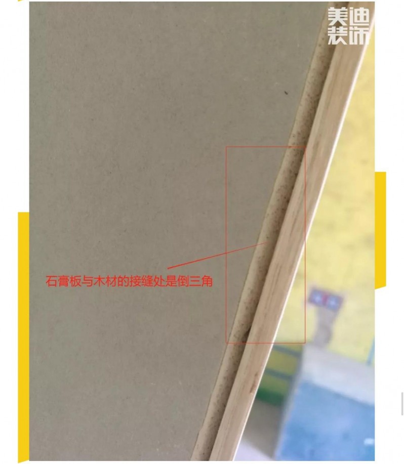 ▲ 最值得一提的是:石膏板與木材的接縫處是完美的倒三角,更大限度地填入白乳膠,使得板材粘合度更高。