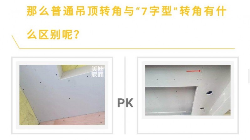 左圖為美迪裝飾:轉(zhuǎn)角采用7字形石膏板,兩邊受力比較均勻,避免后期出現(xiàn)開裂的現(xiàn)象。