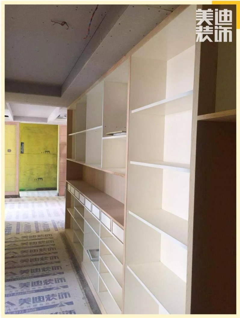 ▲ 一進(jìn)入工地就讓人感覺特別干凈整潔,過道上一排木柜整潔地在一邊。鋪好的地板使用專業(yè)保護(hù)膜進(jìn)行成品保護(hù),防止后期施工中對地磚、地板造成的傷害,保護(hù)現(xiàn)場成品是很重要的。