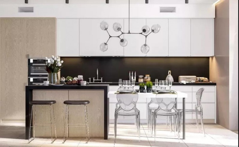 而且使用吧臺來代替餐桌用餐也是別有情調(diào)的~另外注意,要是用吧臺來代替餐桌的話,記得安上合適的吊燈哦。