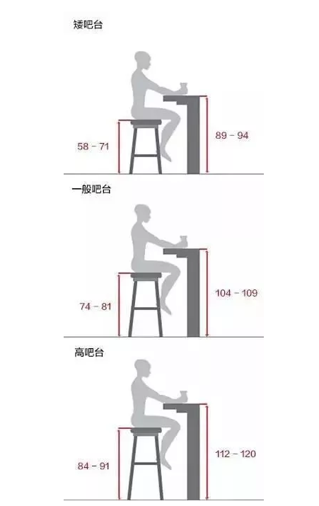 說完吧臺設(shè)計之后再給大家科普一個小知識,即不同高度的吧臺和吧椅的標準設(shè)計: