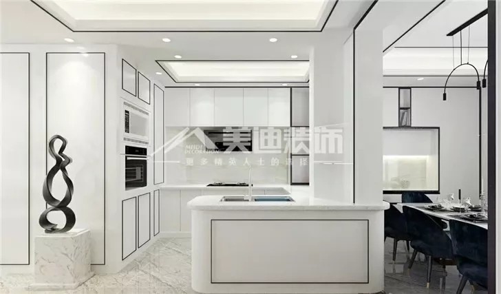 島型廚房布局:即是有雙操作臺,中間留出通道,呈現(xiàn)島型設計。多數(shù)是開放式廚房中會選擇的布局。島型布局的要求是廚房寬度和深度要夠,面積要寬敞,不然沒辦法滿足島型布局。