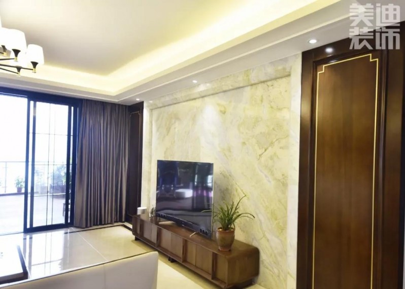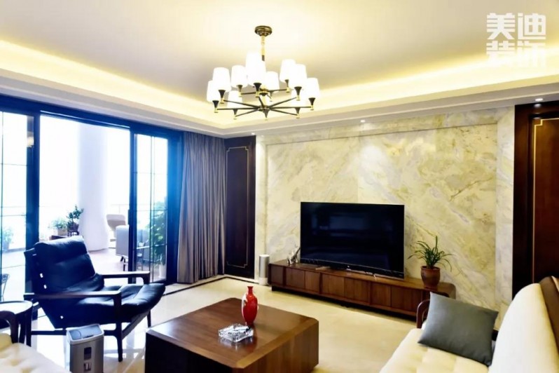 ▲再往前走,便來到了客廳區(qū),客廳與餐廳互通,方便了兩個空間的互動,空間也更寬敞通透;同時客廳的設(shè)計簡約而內(nèi)斂,卻隱隱透露出悠然自得的生活氣息。