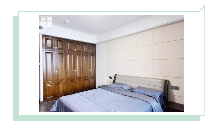 ▲床頭背景墻是做了木質(zhì)的硬包造型,搭配白色的墻面,讓人感覺時尚又有格調(diào),嵌入式的衣柜的設(shè)計,也讓主臥更加寬敞。尤其木色的衣柜很搶眼,滿足毛姐夫妻倆的收納需求。