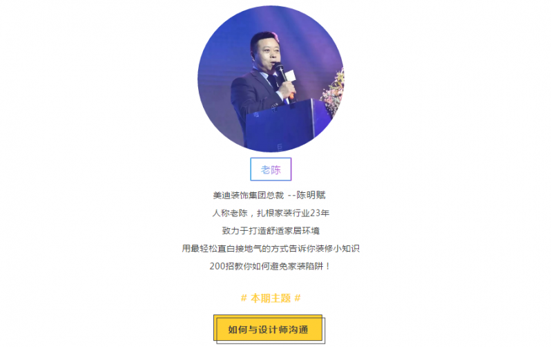 美迪家裝現(xiàn)推出《老陳聊裝修》特別欄目
