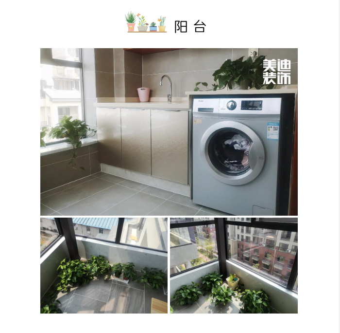 湯欽老師將洗衣房設(shè)置在陽(yáng)臺(tái)上,充分利用空間,同時(shí)也便利了業(yè)主的生活。業(yè)主夫婦都是熱愛(ài)生活的人,不論是客廳還是陽(yáng)臺(tái)上,都擺滿了綠植。生活是自己的,只要用心布置,就能收獲滿滿的幸福感。