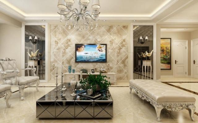 整體裝修是輕奢歐式風(fēng)格的,帶點(diǎn)宮廷式的感覺(jué),歐式皮藝沙發(fā)搭配創(chuàng)意玻璃茶幾,墻壁與地磚附帶歐式花紋,整個(gè)客廳看上去富麗堂皇,也十分寬敞。