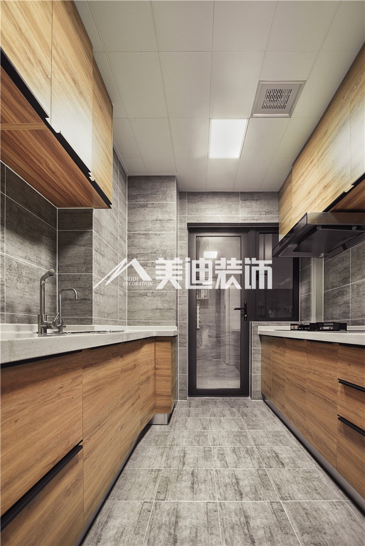 二字型廚房布局:顧名思義就是雙操作臺,但是比U字型布局少了轉(zhuǎn)角位置。二字型廚房同樣要求寬度要夠,容得下雙操作臺和通道。