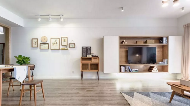 麋鹿掛畫使原本單調(diào)的白墻顯得幾分可愛復(fù)古;簡單利索電視組合柜,符合大家喜歡囤貨的小習(xí)慣,既滿足儲物的同時,也完全與溫馨的空間相融合。