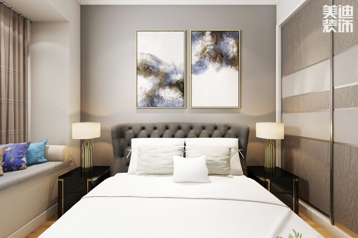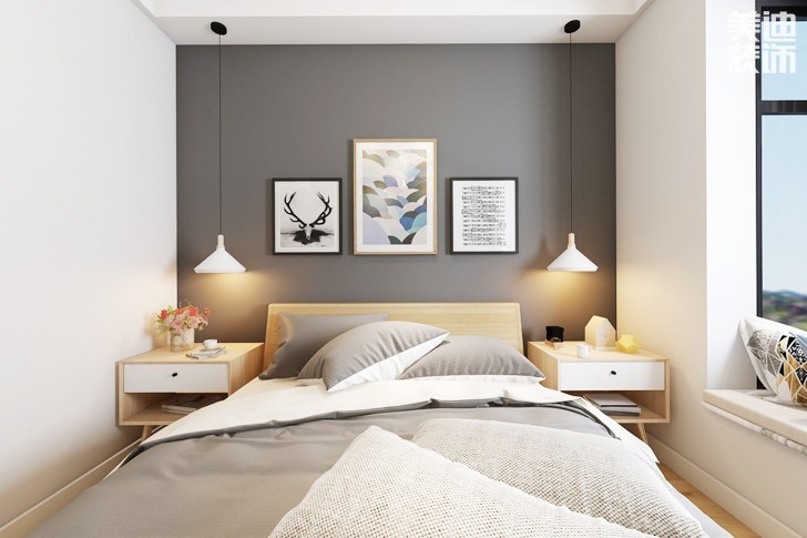 兩張并排擺放的床,彼此間的距離應(yīng)是90厘米。除了滿足放下兩個(gè)床頭柜的需求,還要考慮到兩個(gè)人的行動(dòng)空間。床的外側(cè)距離也不要忽視,以便不影響清潔地板和整理床上用品。