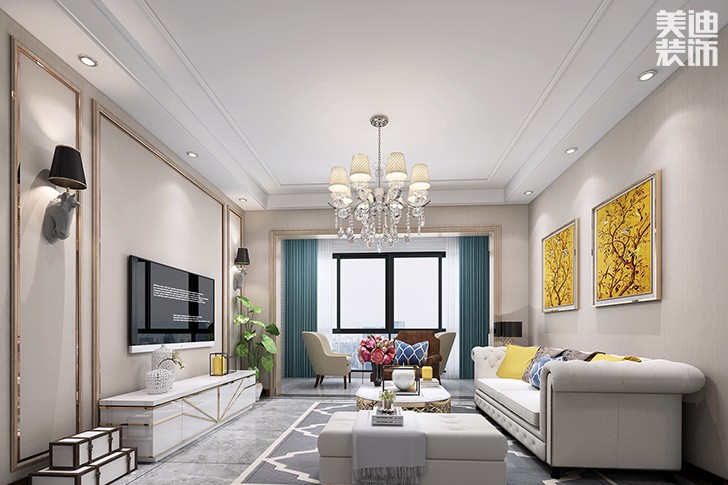 客廳是一成不變的白色,但是在白色的基礎(chǔ)上繪畫了黃色、藍(lán)色、粉紅色等作為點(diǎn)綴。不管是從那個角度看都那么的簡潔而不失華麗感。