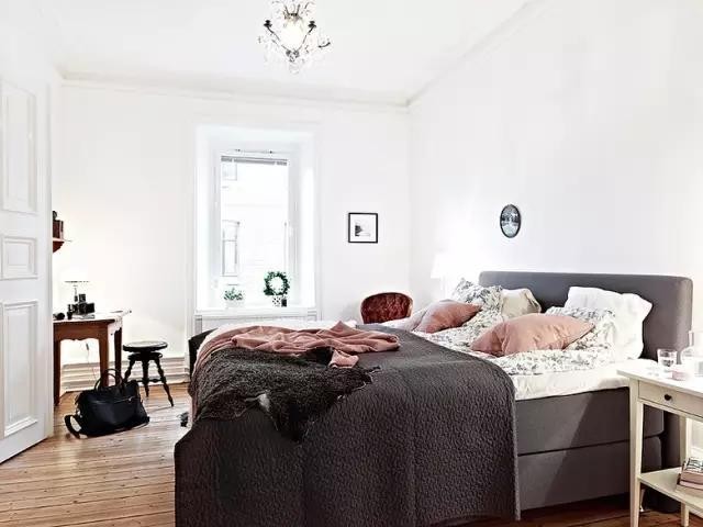 臥室正中擺放一張簡約雙人床,角落一張實木梳妝臺,臥室的主體結(jié)構(gòu)僅此而已,簡約就是這樣。
