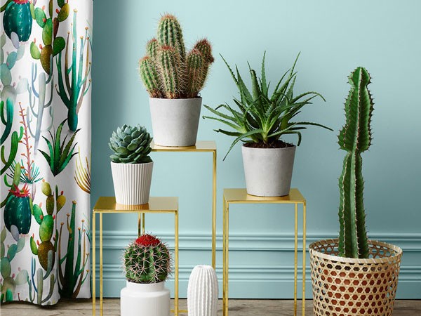 如果能淘到質感優(yōu)良的金屬花架,選擇高低不一的金屬花架,放置造型各異的仙人掌,這里絕對是家里負責顏值擔當的一個角落。