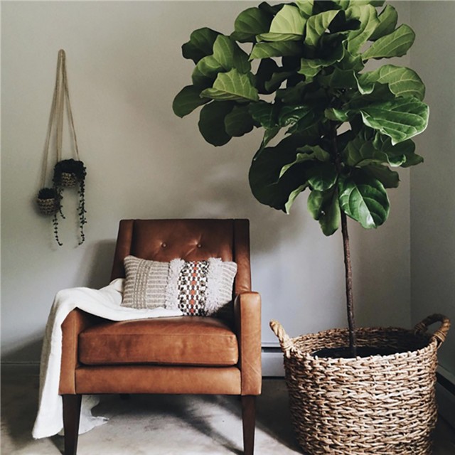 在休閑的沙發(fā)旁邊擺一棵體積較大、修剪得當的琴葉榕,立馬使整個角落都富有生機了起來。