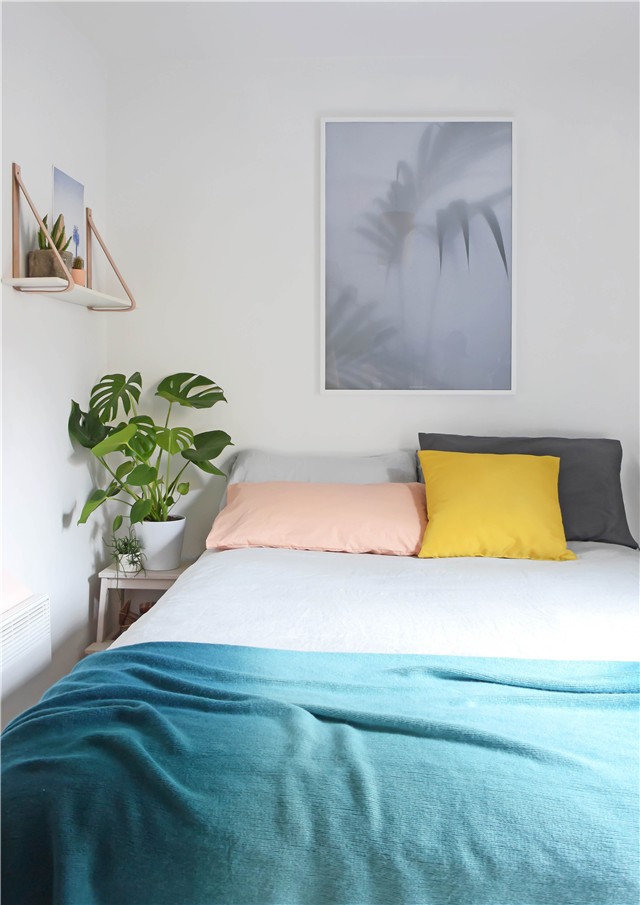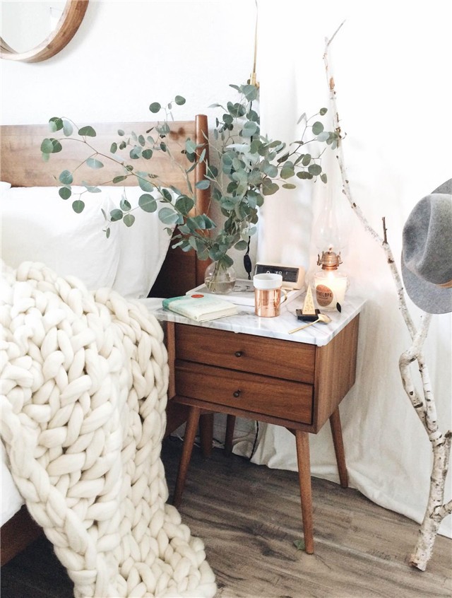 臥室不適合長期放大型植物,但如今當道的北歐風家里,角落有一兩支真實的綠植做點綴為感官上增加清爽涼意。