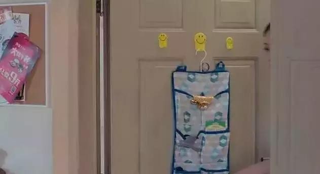 門的背后掛著一個收納袋,可以放置很多小雜物或出門容易忘掉的東西。