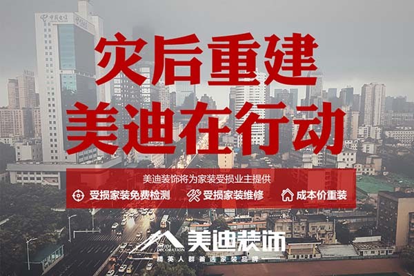 2、凡是近兩年在美迪裝飾裝修的業(yè)主,其房屋因洪災受損,可在美迪裝飾申請免費的家裝維修服務,服務具體內(nèi)容為免除基礎裝修部分、水電部分的人工費用。