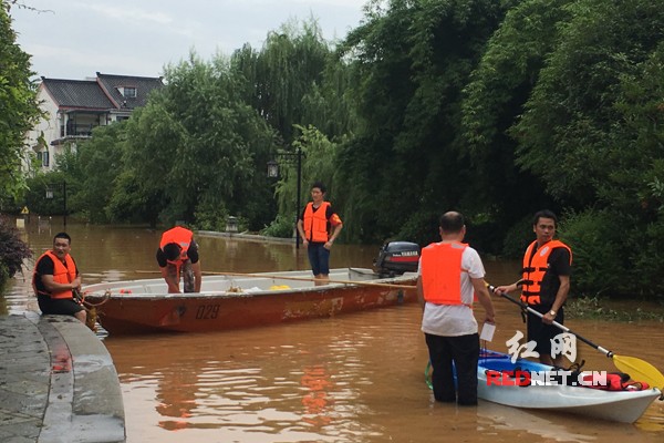 在長(zhǎng)沙,美迪裝飾的工作人員自備船只,前往汀湘十里劃船救援。