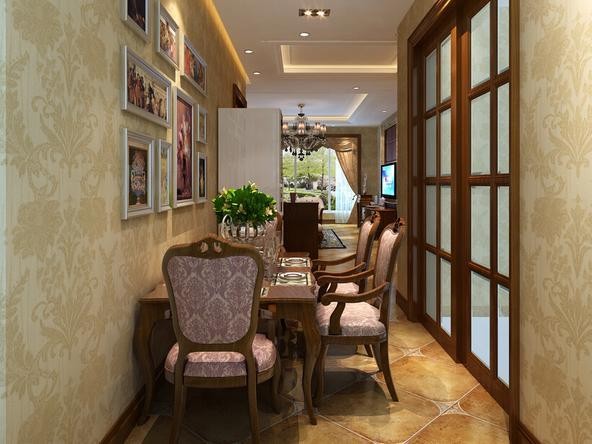 藉由進(jìn)口壁紙為視線打底,襯托出端景柜的低調(diào)華麗。