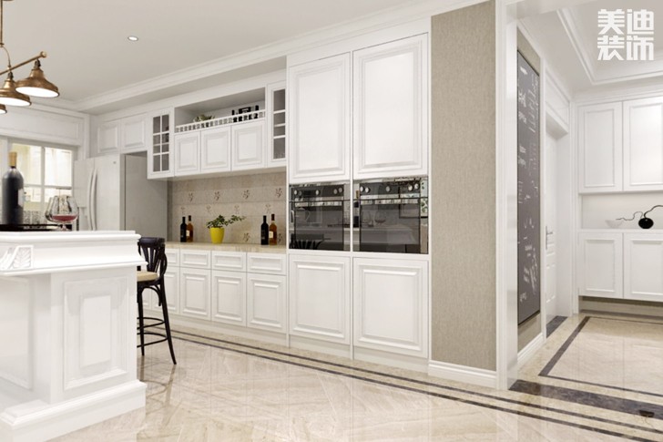 開放式廚房工作區(qū)容易有油污殘留,在進行裝修規(guī)劃時,包含客廳、餐廚等區(qū)域的墻面、地坪材質(zhì)選擇都應(yīng)列入考量范圍,可以使用耐臟、耐磨的地磚或強化地板,清潔上會更加輕松方便。