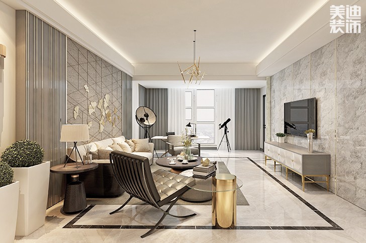 通過純凈簡潔的空間規(guī)劃與材質(zhì)的運用,在舒適和美觀,在實用和夢想之間取得平衡。大面積的黑白灰與金屬質(zhì)感以及菱角分明的家具相結(jié)合,完美的展現(xiàn)業(yè)主所期盼的家居環(huán)境。