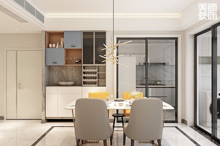 中島吧臺的設(shè)計有3大作用:1.它是收納廚具的好地方;2.是客廳、廚房之間的隔斷;3.還作為吃飯的餐桌。