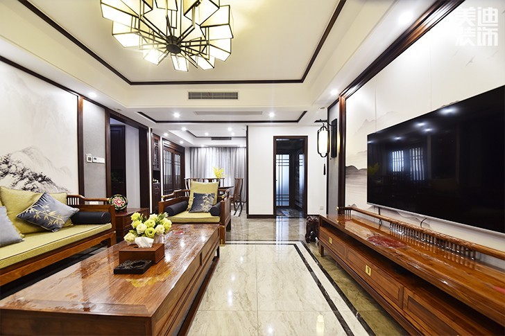 在中國(guó)文化風(fēng)靡全球的現(xiàn)今時(shí)代,中式元素與現(xiàn)代材質(zhì)的巧妙兼柔,唐宋家具、明清窗欞、布藝床品相互輝映,再現(xiàn)了移步變景的精妙小品。繼承明清時(shí)期家居理念的精華,將其中的經(jīng)典元素提煉并加以豐富,同時(shí)改變?cè)锌臻g布局中等級(jí)、尊卑等封建思想,給傳統(tǒng)家居文化注入了新的氣息。接下來(lái)小美給大家?guī)?lái)一套現(xiàn)代中式裝修樣板間。