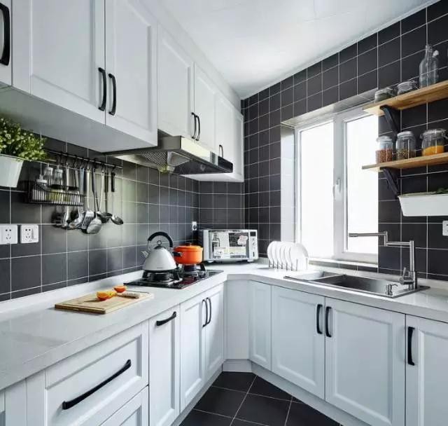 一般的廚房都偏長,而長方形廚房較為適合設(shè)計L型櫥柜,這樣不僅空間利用率直線飆升,還能留出空間給業(yè)主適配各種廚房家電,增強廚房的兼容性。